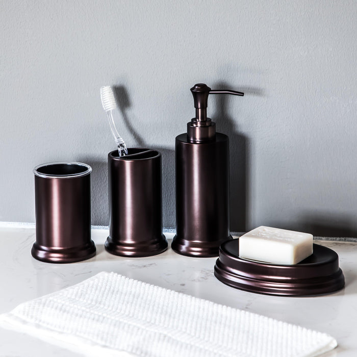 Home Zone Living Bath Accessory Set | Toothbrush Holder, Hand Soap Dispenser, Soap Tray and Tumbler (Oil-Rubbed Bronze)