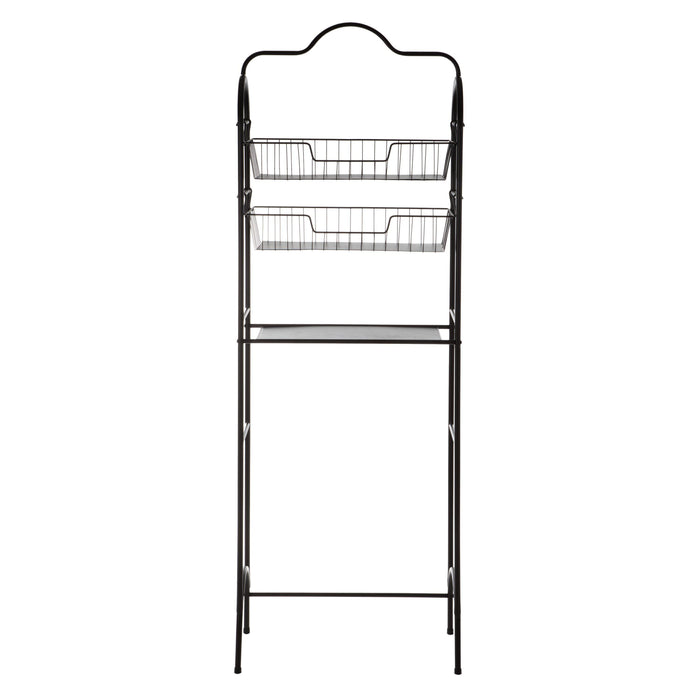 The CAL7000U 3-tier over-the-toilet space saver is an efficient way to store your bathroom essentials. It utilizes an often unused area in the bathroom to make the most out of every space. What's unique is that it features hanging baskets for the top two shelves. Allowing you to store more items without worrying about things tipping over. Becoming more organized at home is now made easier than before. The modern design with the classic oil-rubbed bronze finish adds a timeless space saver that will fit right in with most decor. The 3-tier storage unit makes it easier for you to obtain what you want, when you want it, without the hassle of digging through drawers and cabinets.