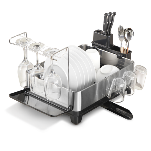 Keep you kitchen counter tops clean and dry with a compact dish drying rack. Dish drying racks are ideal for condos, homes and apartments. Perfect for storing the basics such as plates and silverware