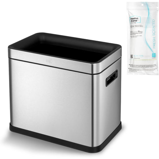 Compatible with 30S Trash Bag Description Features a slim body stainless steel kitchen trash can complimented with a 2.5-gallon variant. The large...