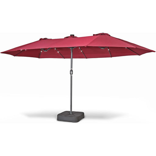 View full details15x9 Ft Double Head UV Resistant & Waterproof Patio Umbrella with Base, 36 LED Lights