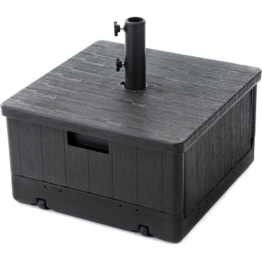 4-in-1 Square 21" Planter Umbrella Base: Wheels, Water Weight, Table & Planting Box