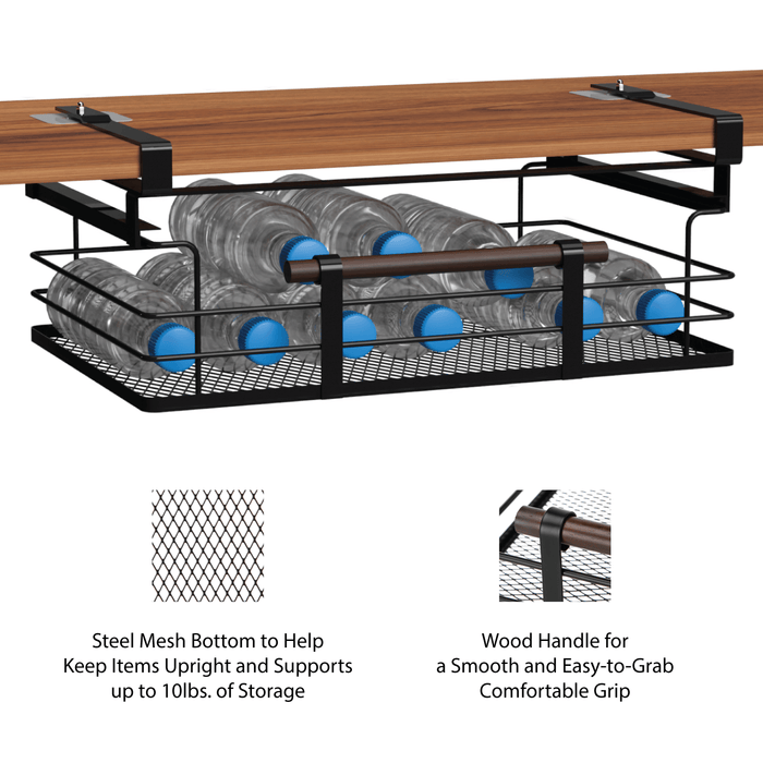 - Steel Mesh with Wood Handle – The strong steel mesh basket helps keep items in an upright position and supports up to 6 lbs. of storage weight, while the wood handle allows for an easy-to-grab comfortable grip.