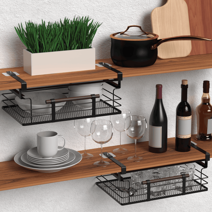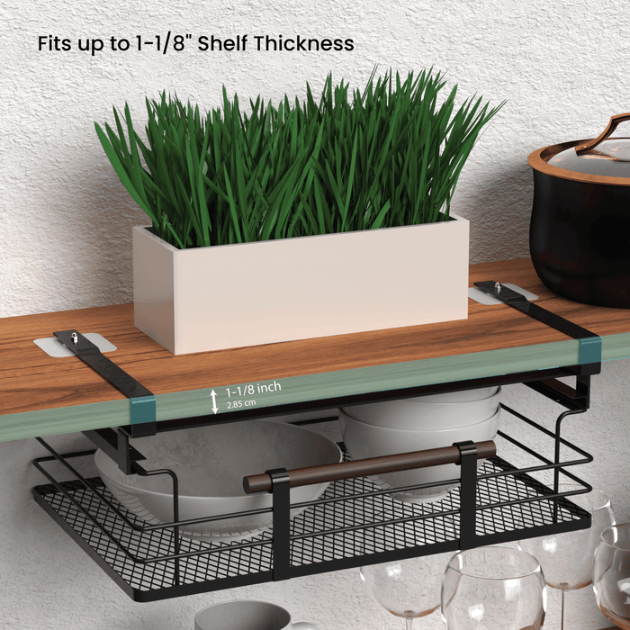 Maximize your Kitchen Storage Capacity – Easily store and retrieve your kitchen cabinet essentials with this under-shelf pull-out storage basket.