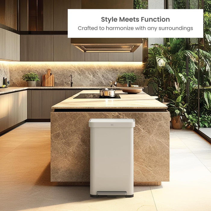 - Versatile Design: Available in 13 and 18.5-gallon capacities and a variety of matte finishes to complement your personal style and kitchen design