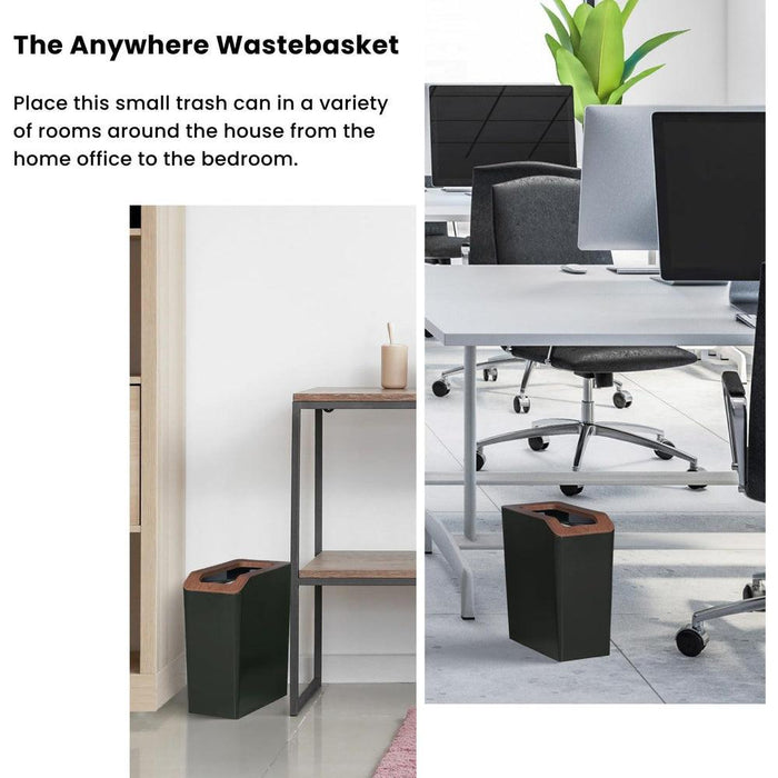 - The Anywhere Wastebasket – At 7.9 liters with an easy-access open top removable plastic lid design, you are able to place this small trash can in a variety of rooms around the house from the home office to the bedroom.